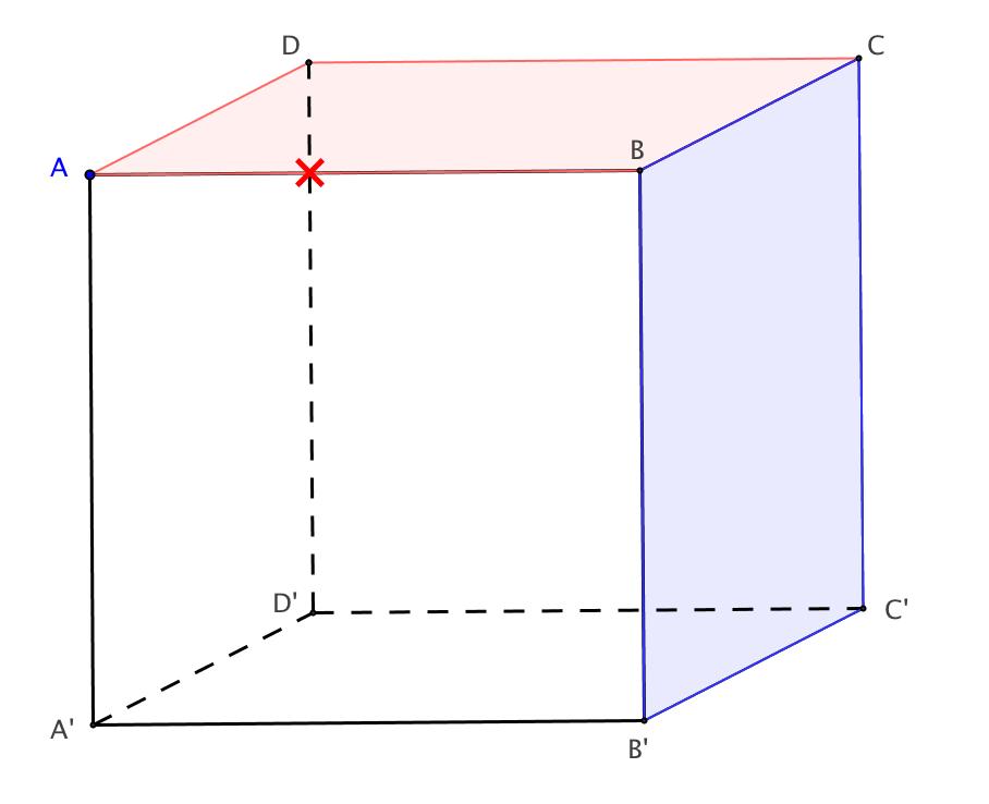 A B] semblent être sécantes au point marqué d'un croix rouge. Ce point n'a pas d'existence dans l'espace sinon la face