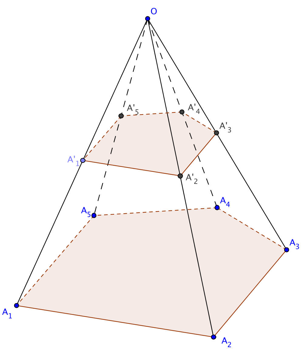 , comme les deux pyramides ont même sommet et que leurs bases sont parallèles, il existe une homothétie